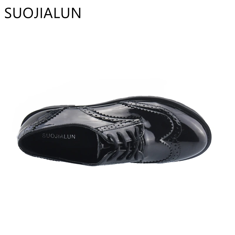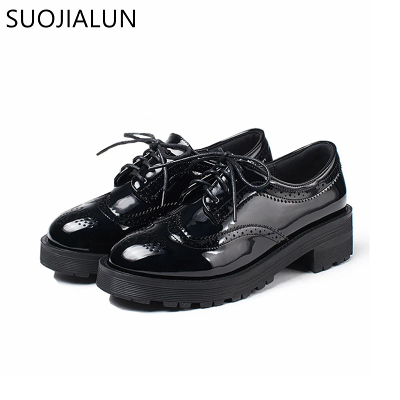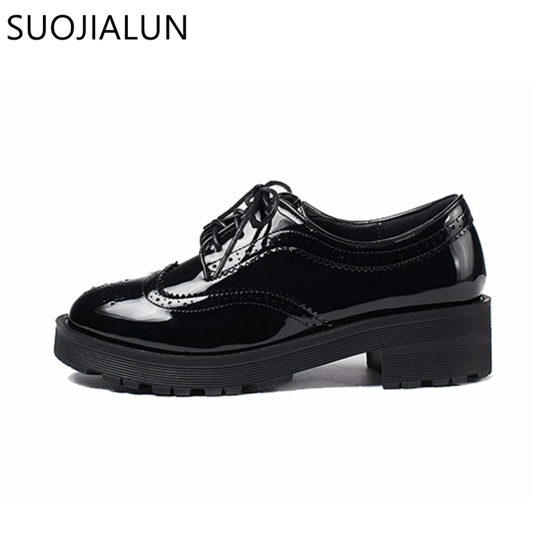 Acheter 2018 Mode Oxford Plat Chaussures Femmes Femme Oxford En Cuir Verni Rétro Sculpté Femmes Chaussures Bout Rond Britsh Style Casual Sneaker Pas Cher Prix