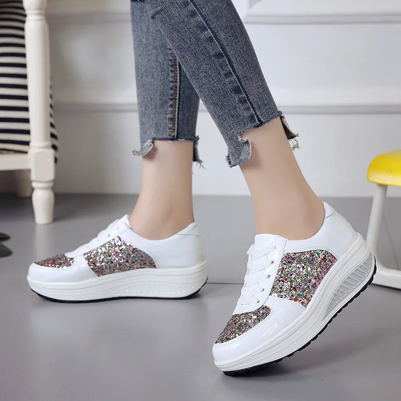 Achat HEE GRAND Plate Forme Creepers Bling Glitter Chaussures Femme Dentelle Up Casual Mocassins De Mode Femmes Appartements Chaussures Taille 35 41 XWC1429 Pas Cher Prix