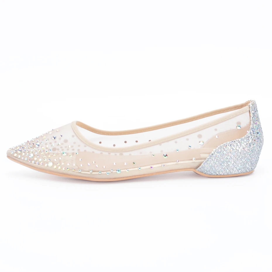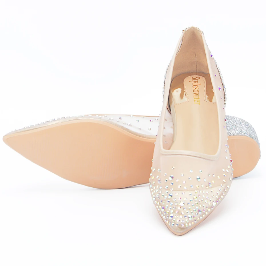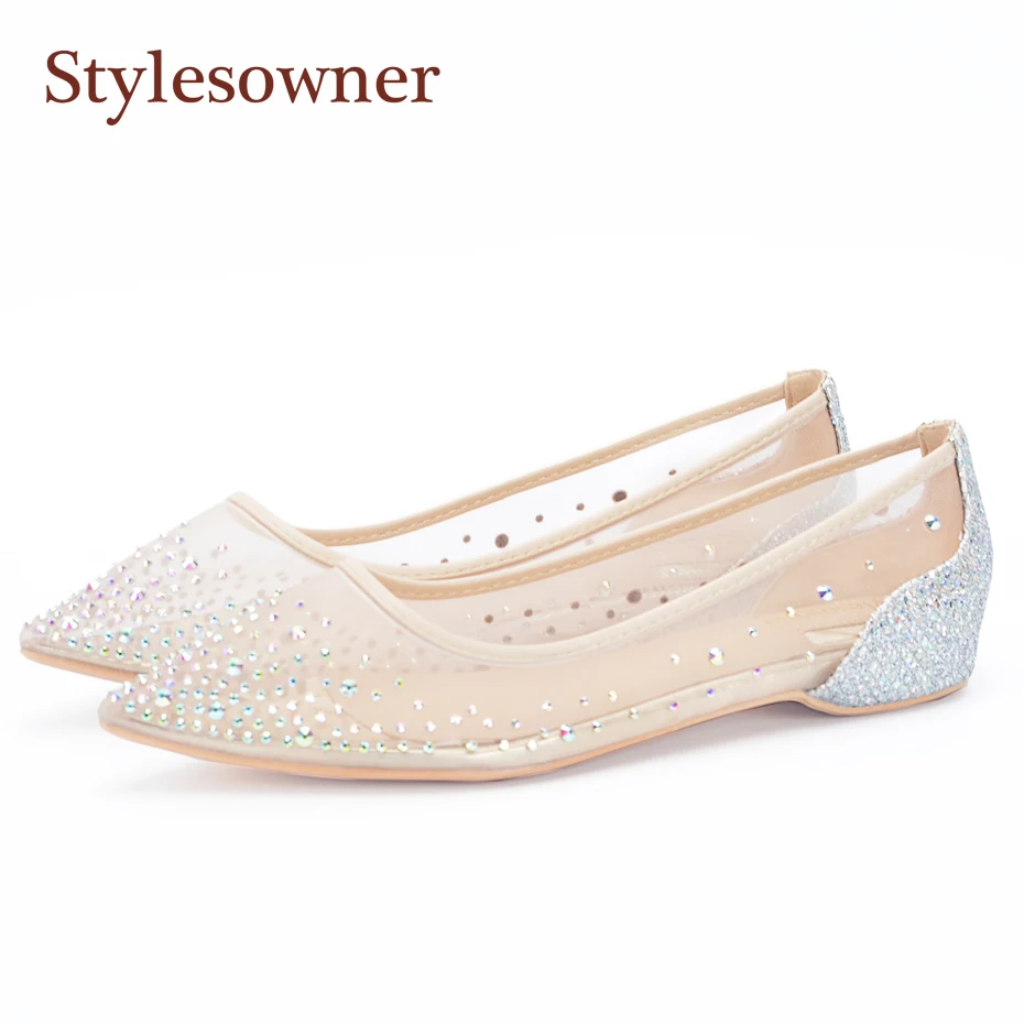 . Vente Stylesowner Printemps Automne Maille Pointe De Diamant Unique Plat Bout Pointu Chaussures De Mariage Femmes Chaussures Slip On Casual Blingbling Cristal Pas Cher Prix.