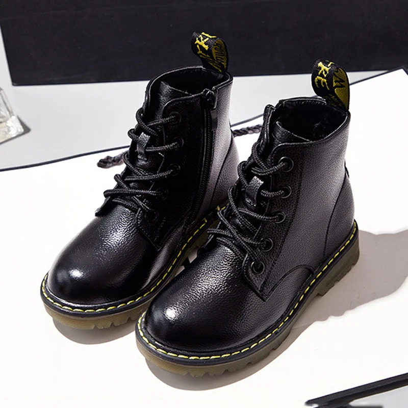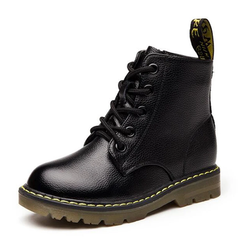 Acheter Meilleur 2018 Hiver Automne Mode Garçons bottes en cuir Véritable Martin Bottes Enfants En Caoutchouc Non glissement Baskets Chaussures pour enfants fille garçon Pas Cher Prix.