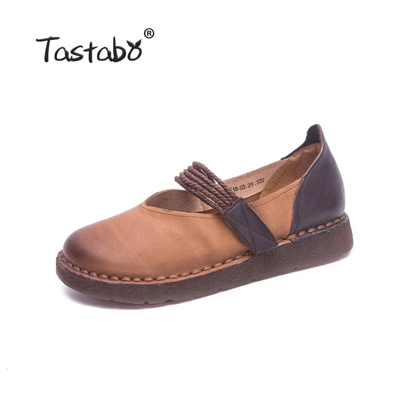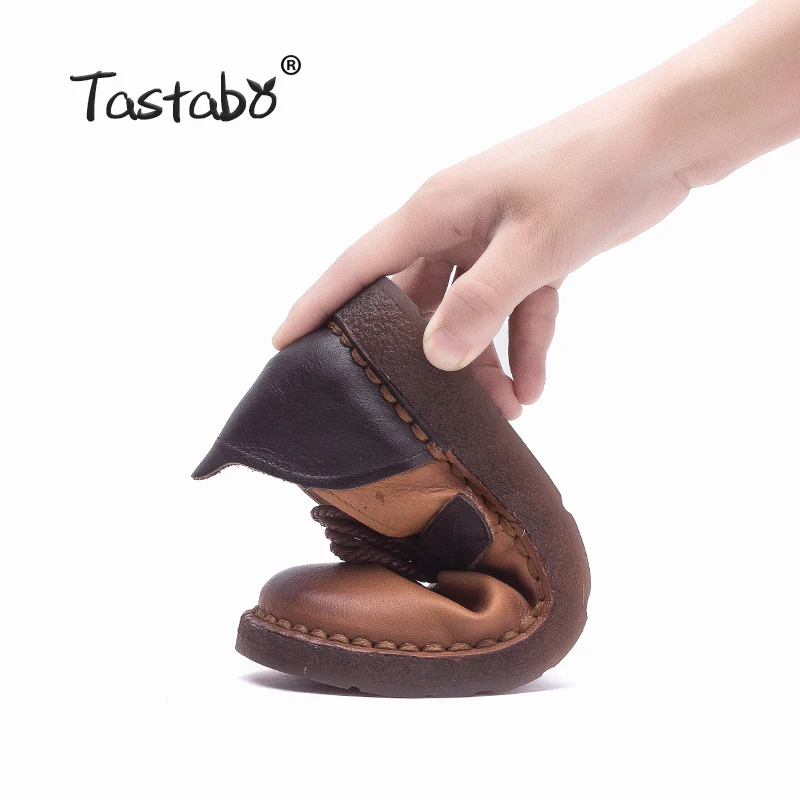 Vente Tastabo Véritable Chaussures En Cuir Femme Plat Doux Bout Rond Infirmière Handmde Casual Chaussures 2018 Mode Mocassins Conduite Chaussures pour Femmes Pas Cher Prix