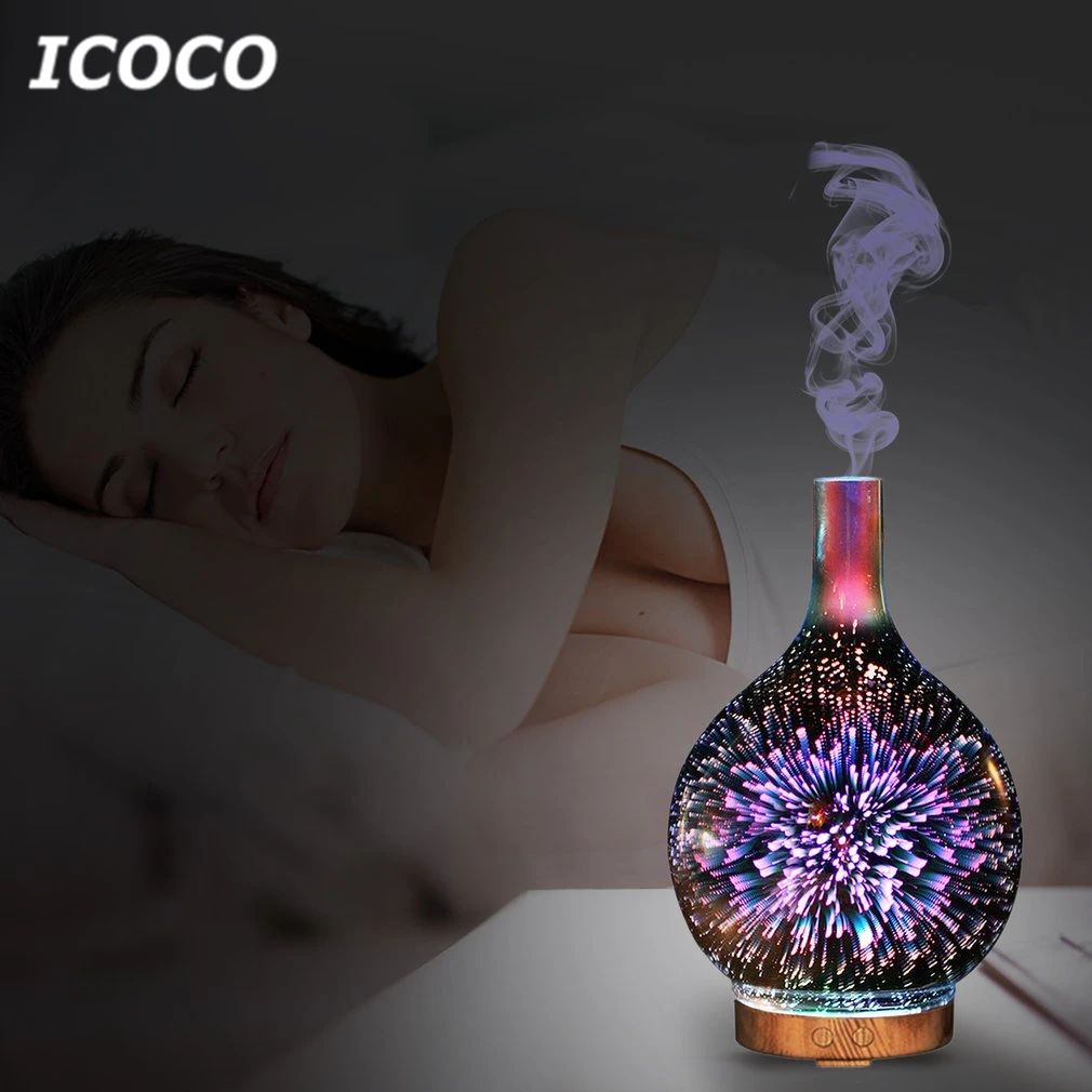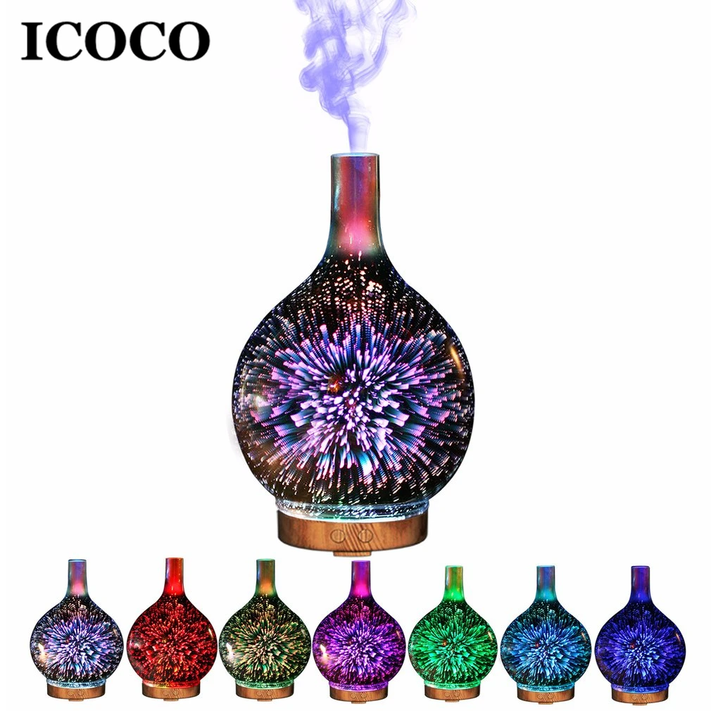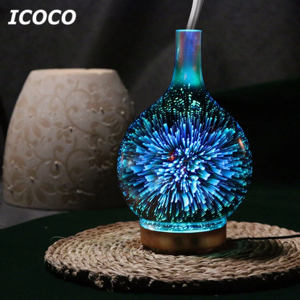 . Acheter ICOCO Coloré 3D Verre Humidificateur LED Nuit Lumière Huile Essentielle Diffuseur Aromathérapie Air PurifierHome Décor Drop Shipping Pas Cher Prix.