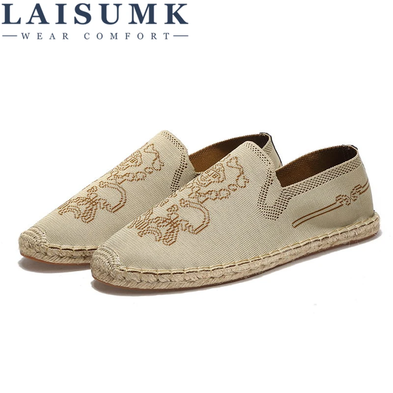 . Achat 2018 LAISUMK Confortable Slip On Casual Chaussures Hommes Toile Chaussures Respirant Hommes Espadrilles Mocassins Plats Livraison Gratuite Pas Cher En Ligne.