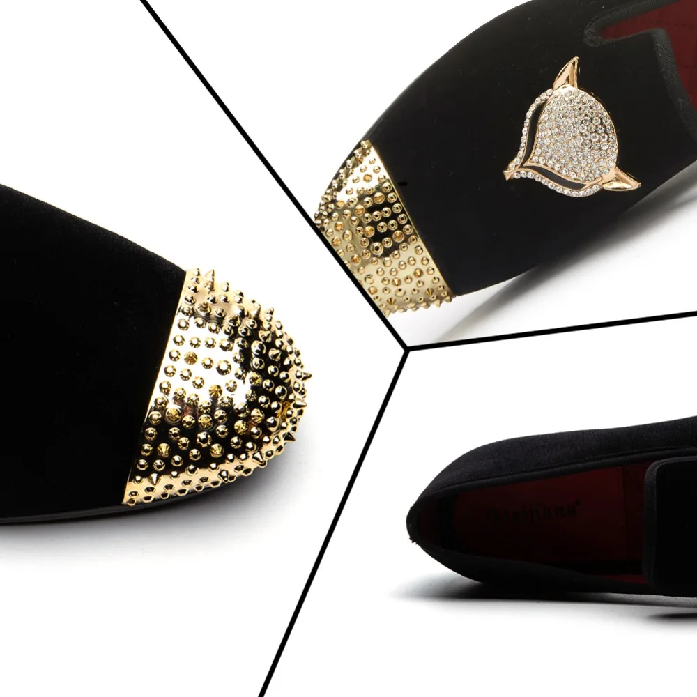 Acheter Meilleur MeiJiaNa hommes chaussures de velours noir avec le crâne boucle et or bout Britannique style hommes mocassins de luxe hommes robe chaussures hommes Pas Cher En Ligne.