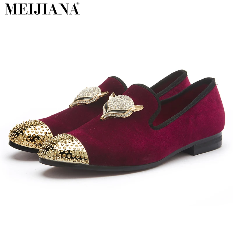 Vente MeiJiaNa hommes chaussures de velours noir avec le crâne boucle et or bout Britannique style hommes mocassins de luxe hommes robe chaussures hommes Pas Cher En Ligne