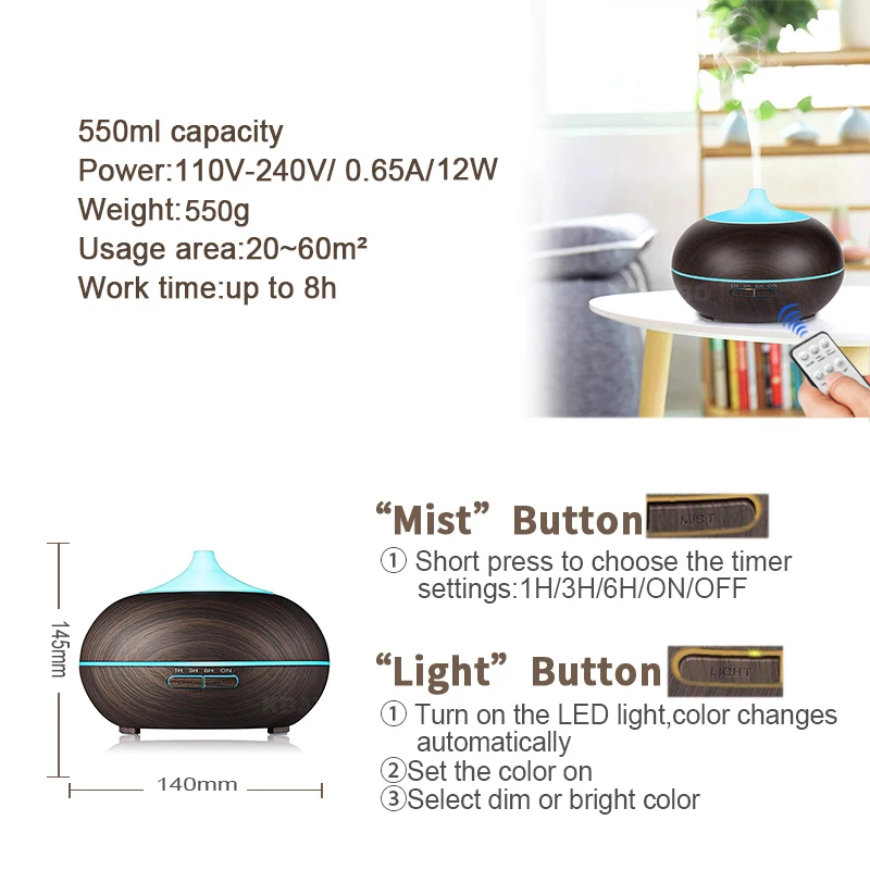 Acheter KBAYBO huile essentielle arôme diffuseur humidificateur d air à ultrasons fabricant de brume fraîche d aromathérapie climatiseur brumisateur pour la maison 300 ml Pas Cher En Ligne