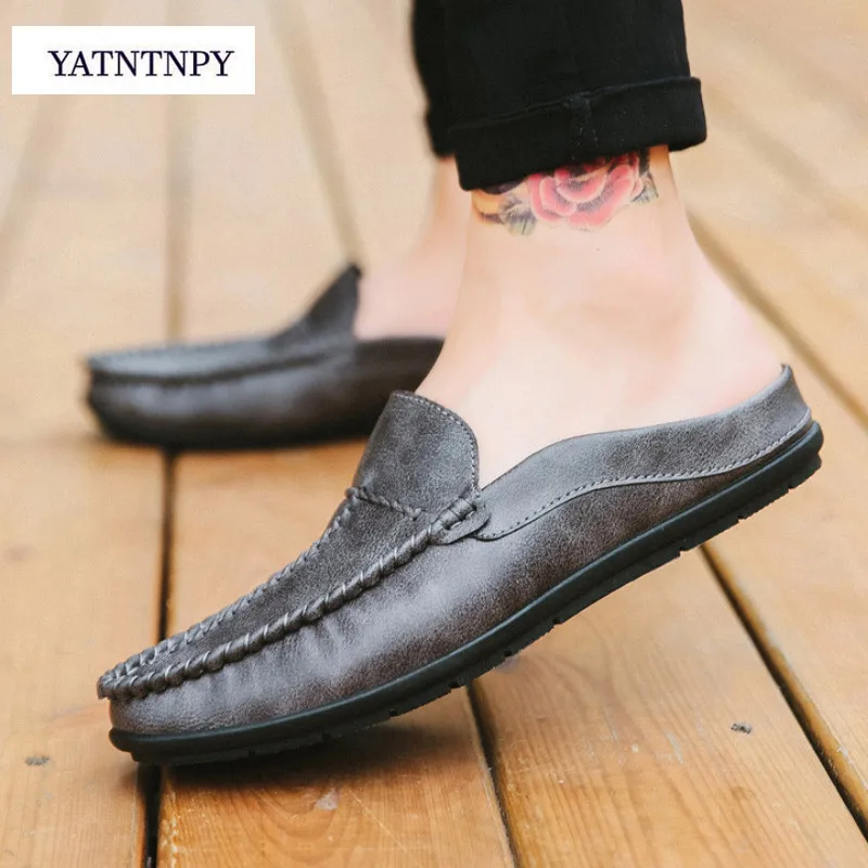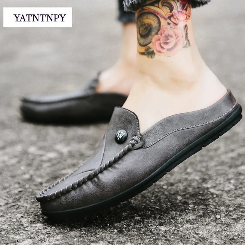 . Vente YATNTNPY Marque Hommes Chaussures D été Casual chaussures plates Homme en cuir souple Chaussures slip sur demi pantoufles Hommes de conduite confortable mocassins Pas Cher En Ligne.
